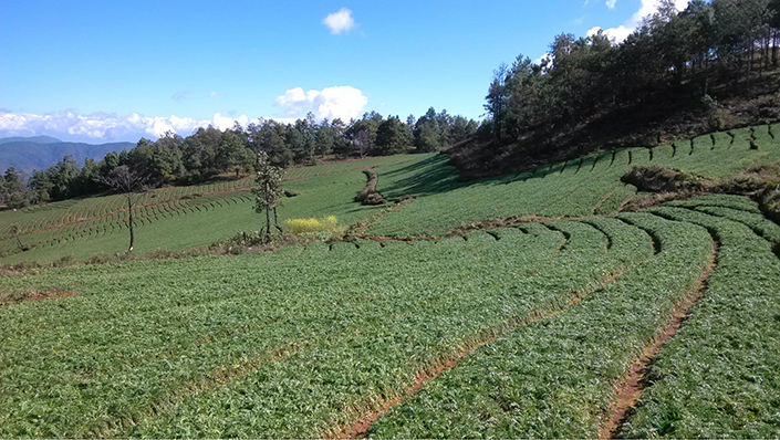 Maca is an edible herbaceous biennial plant of the Brassicaceae family that is native to South America in the high Andes mountains of Peru. It was found exclusively at the Meseta de Bombón plateau close to Lake Junin in the late 1980s. It is grown for its fleshy hypocotyl that is fused with a taproot, which is typically dried to a powder or flour and used as a root vegetable or in traditional medicine. Its Spanish and Quechua names include Maca-maca, Maino, Ayak Chichira, and Ayak Willku. The major Maca cultivating provinces of China is Yunnan, Xizang, Xinjiang etc.